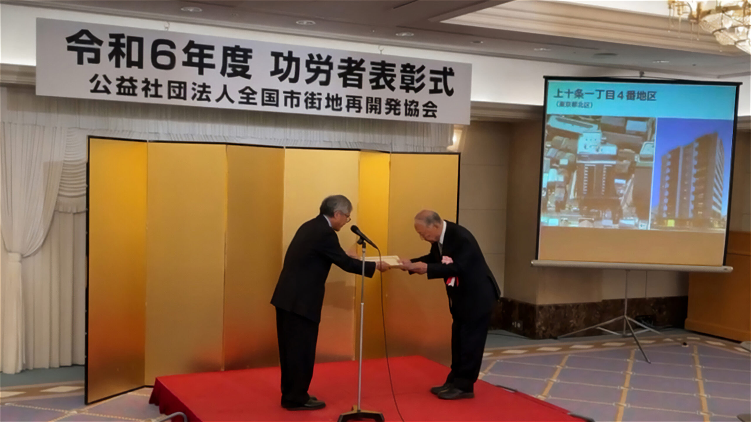 令和6年5月29日、当社が担当しました事業の施行者である「上十条一丁目4番地区防災街区整備事業組合」は、公益社団法人全国市街地再開発協会から「令和6年度功労者表彰」を受賞されました。